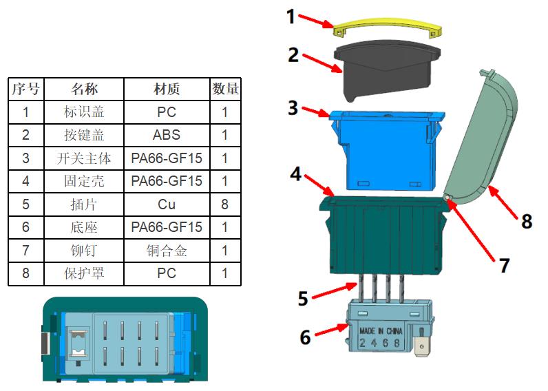 E. 開(kāi)關(guān)耐久:>50000次;